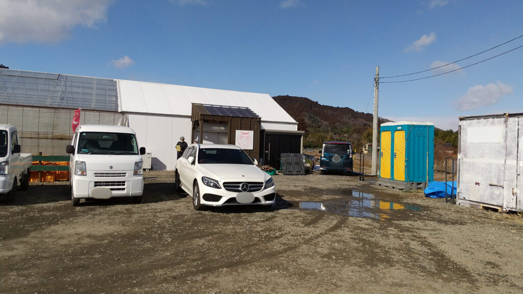 朝一番の到着にもかかわらず、いちご農園『ラ・フレーズ』の駐車場にはすでに車が何台も並んでいます。