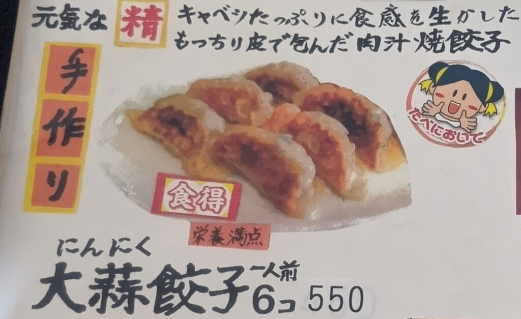 - 大蒜餃子(ニンニクギョウザ)・・・一人前6個550円